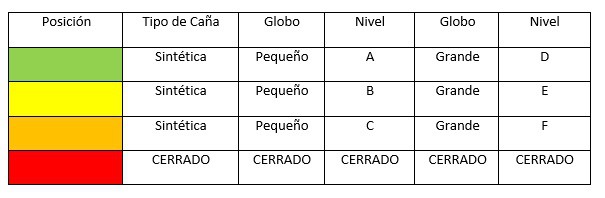 Para la realización de los ejercicios de embocadura montaremos Noto con la caña orgánica o sintética, eligiendo el tamaño del globo dependiendo de la dificultad que queramos practicar según la siguiente tabla específica.