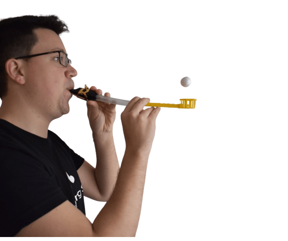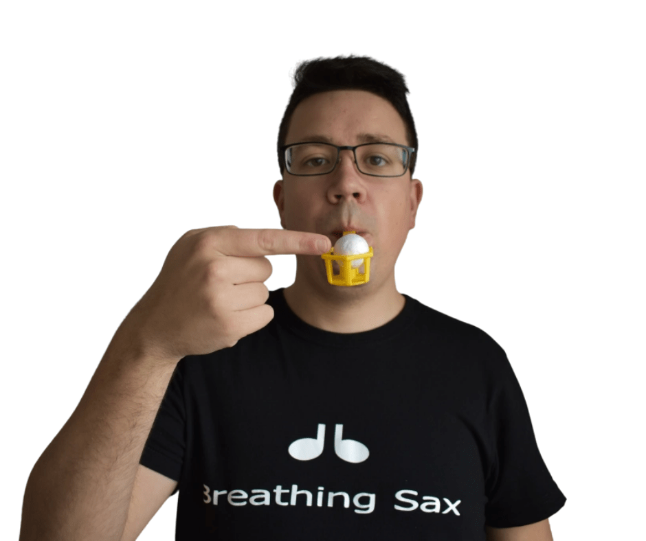 El funcionamiento es muy sencillo ya que simplemente se trata de canalizar el aire través del conducto de plástico para que la bola ascienda y se mantenga en equilibrio el mayor tiempo posible. Siempre con el uso del metrónomo para contar las pulsaciones. (Recomendación: empezar con 120 bpm y llegar hasta 60 bpm, en compases de 4/4).
