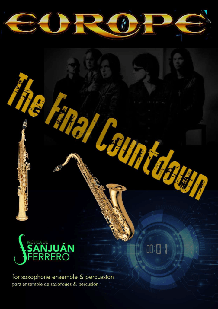 Consigue las partes del arreglo The Final Countdown por un precio único. Para ensemble de saxofones, bajo eléctrico, sintetizador y percusión.