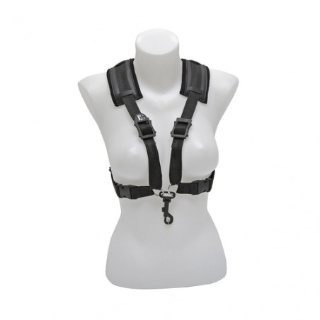 Un arnés distinto y novedoso, su principal característica reside en que el peso del saxo se reparte evitando cargar la zona de las cervicales.